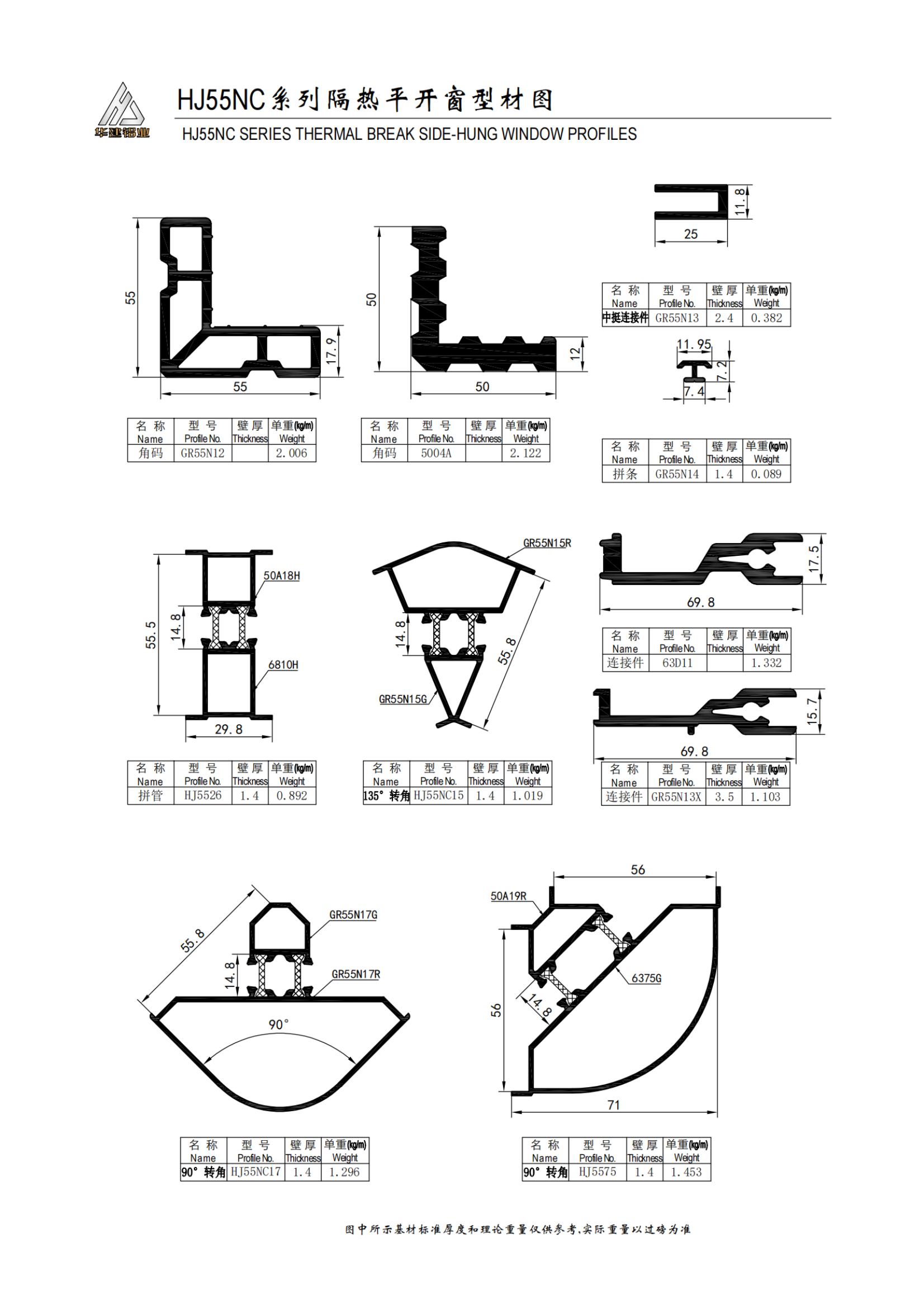 Теплоизолированное распашное окно серии HJ55NC