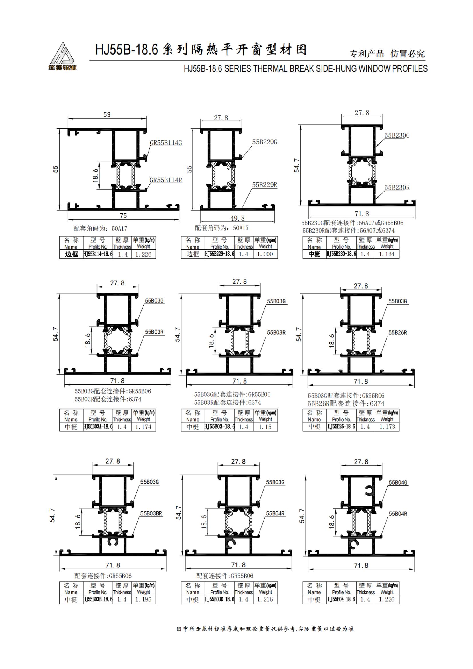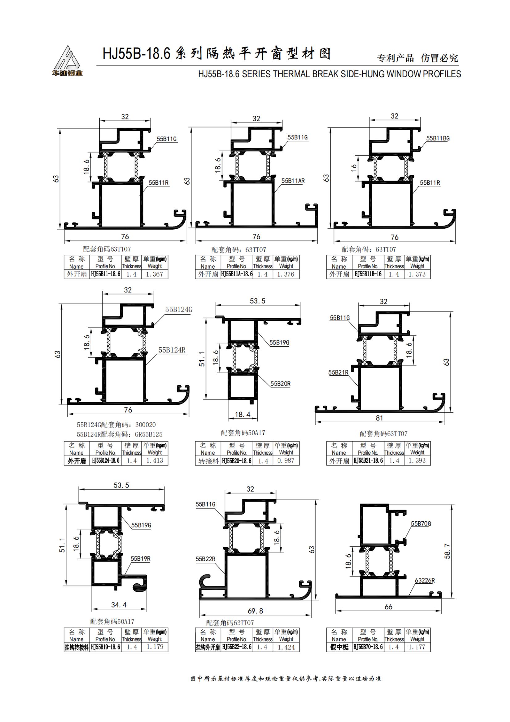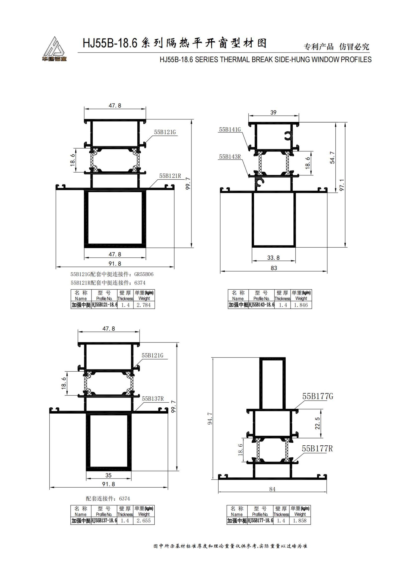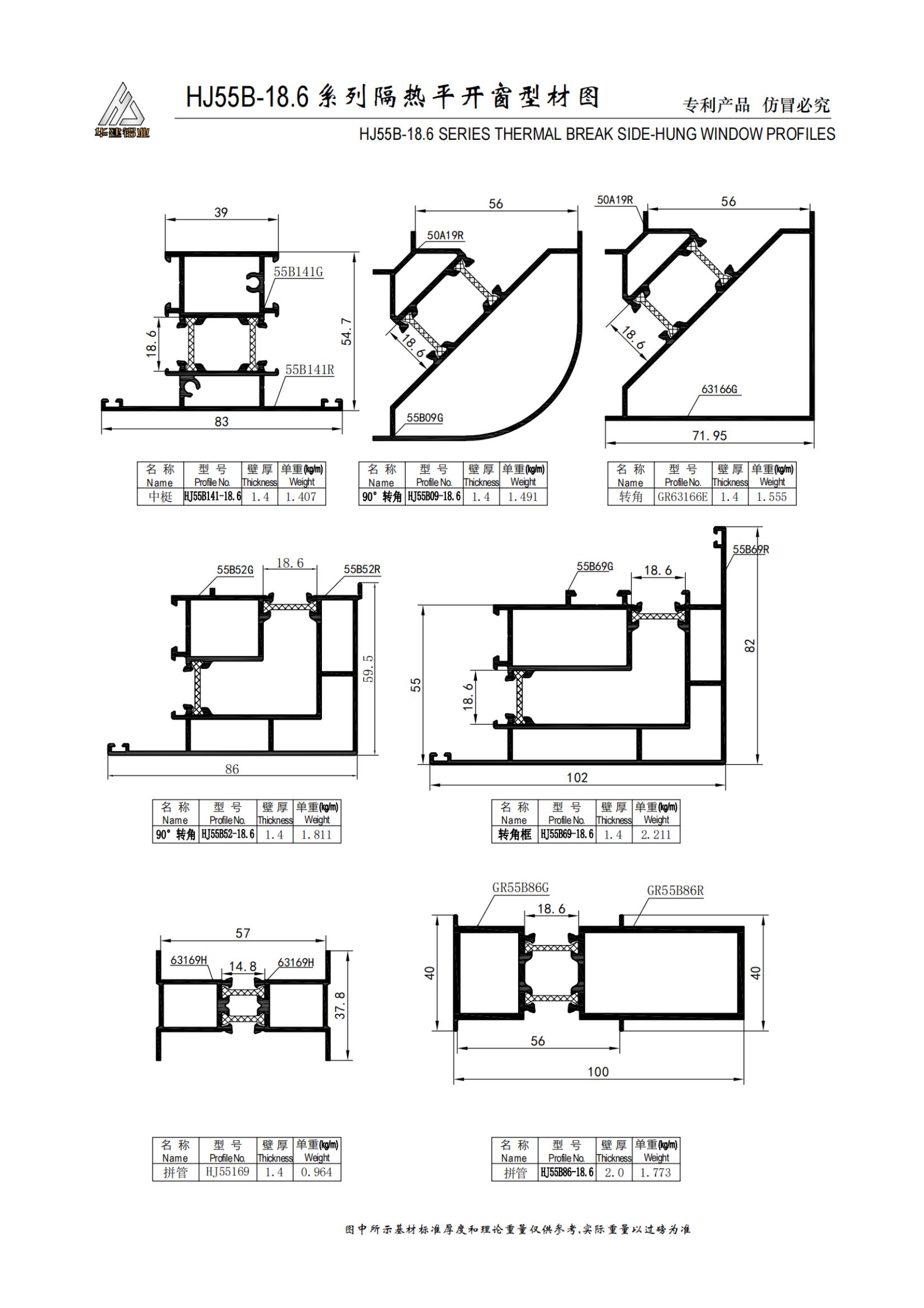Теплоизолированное распашное окно серии HJ55B-18.6