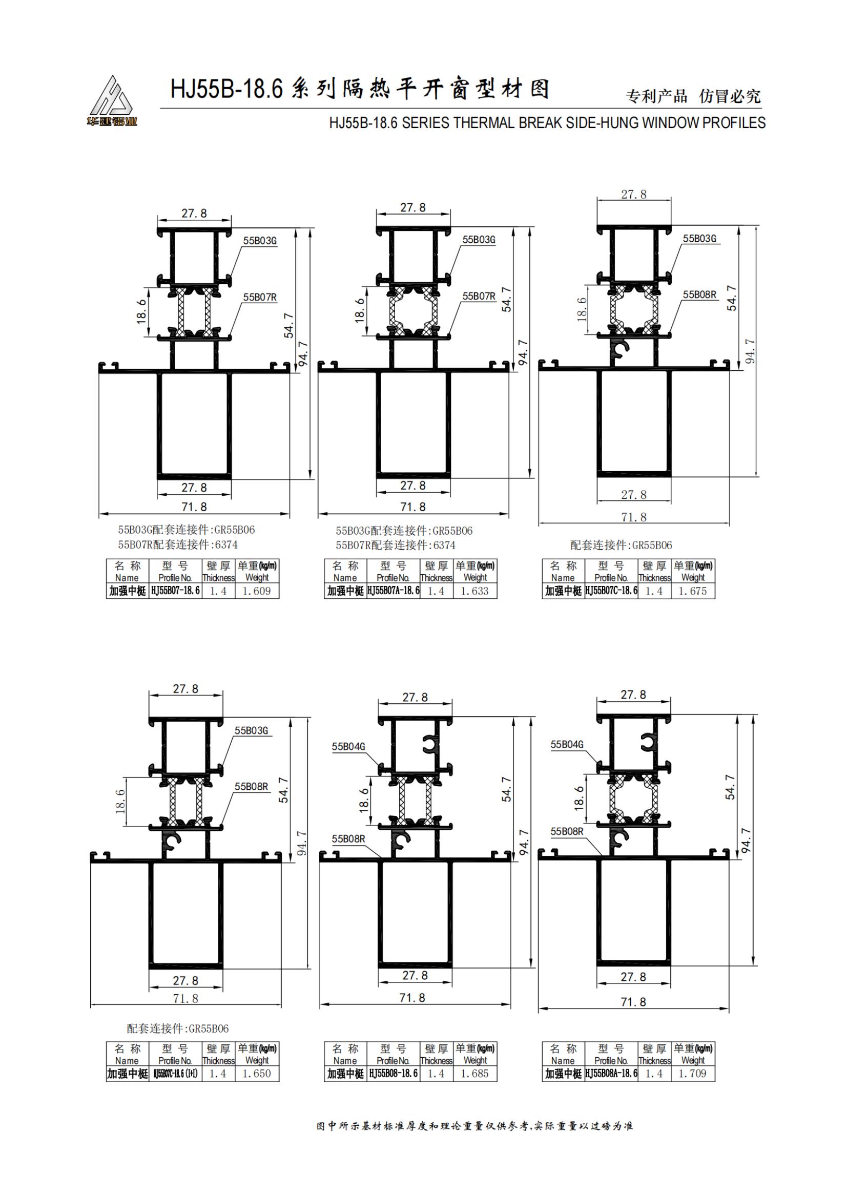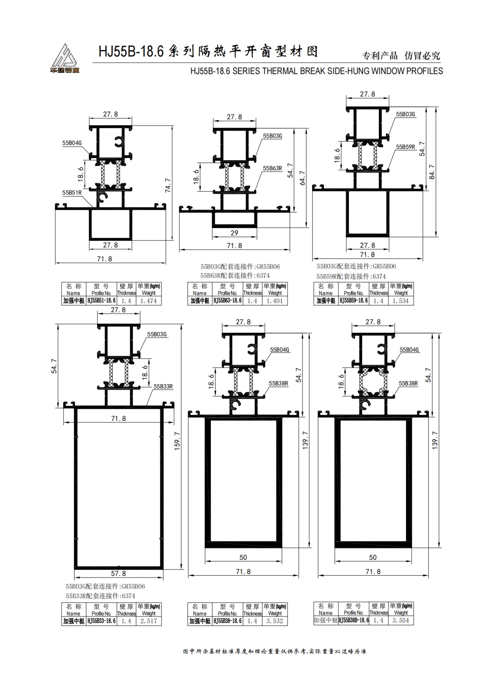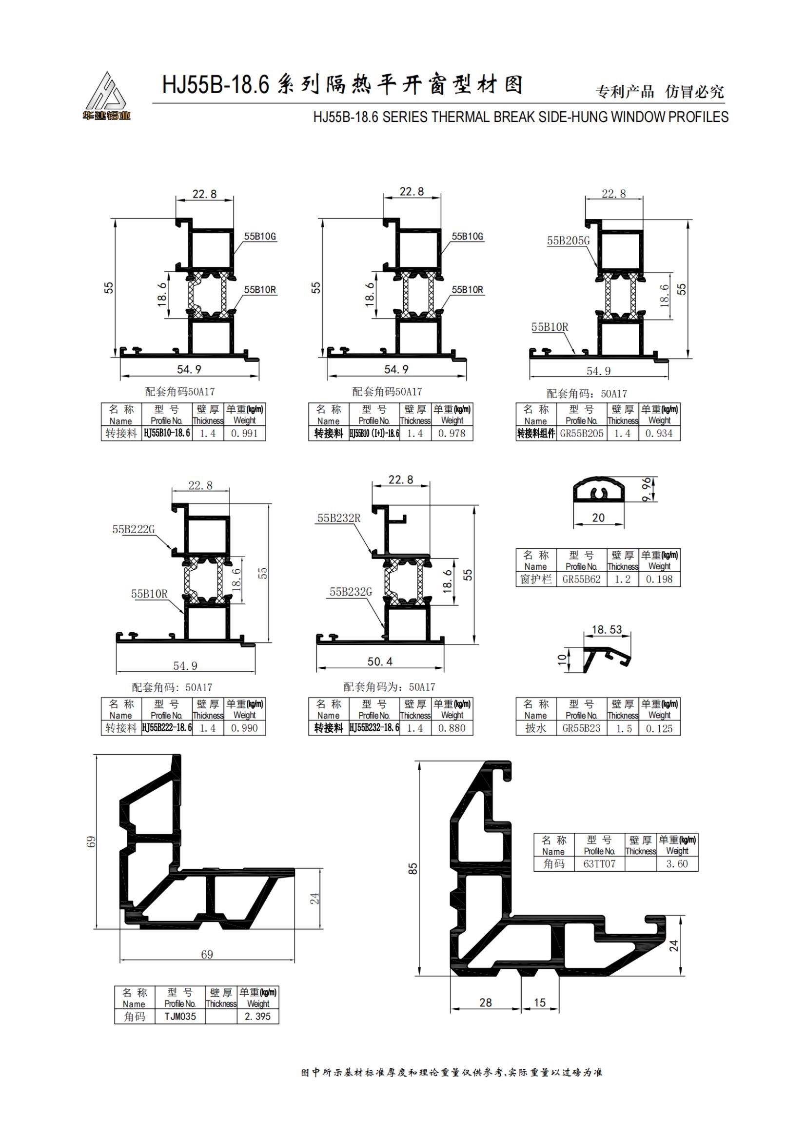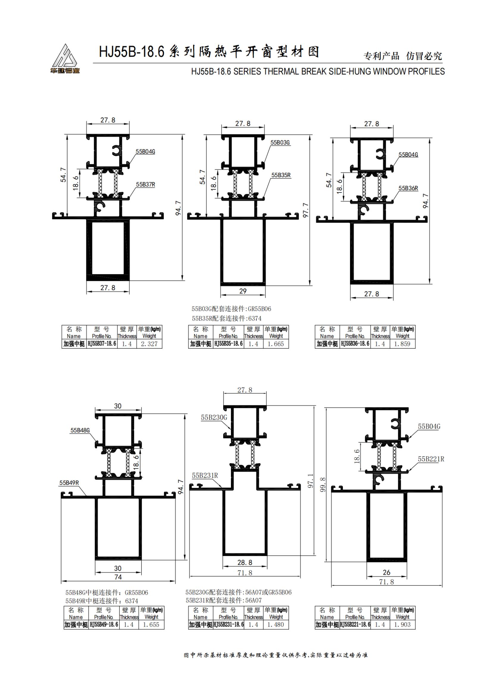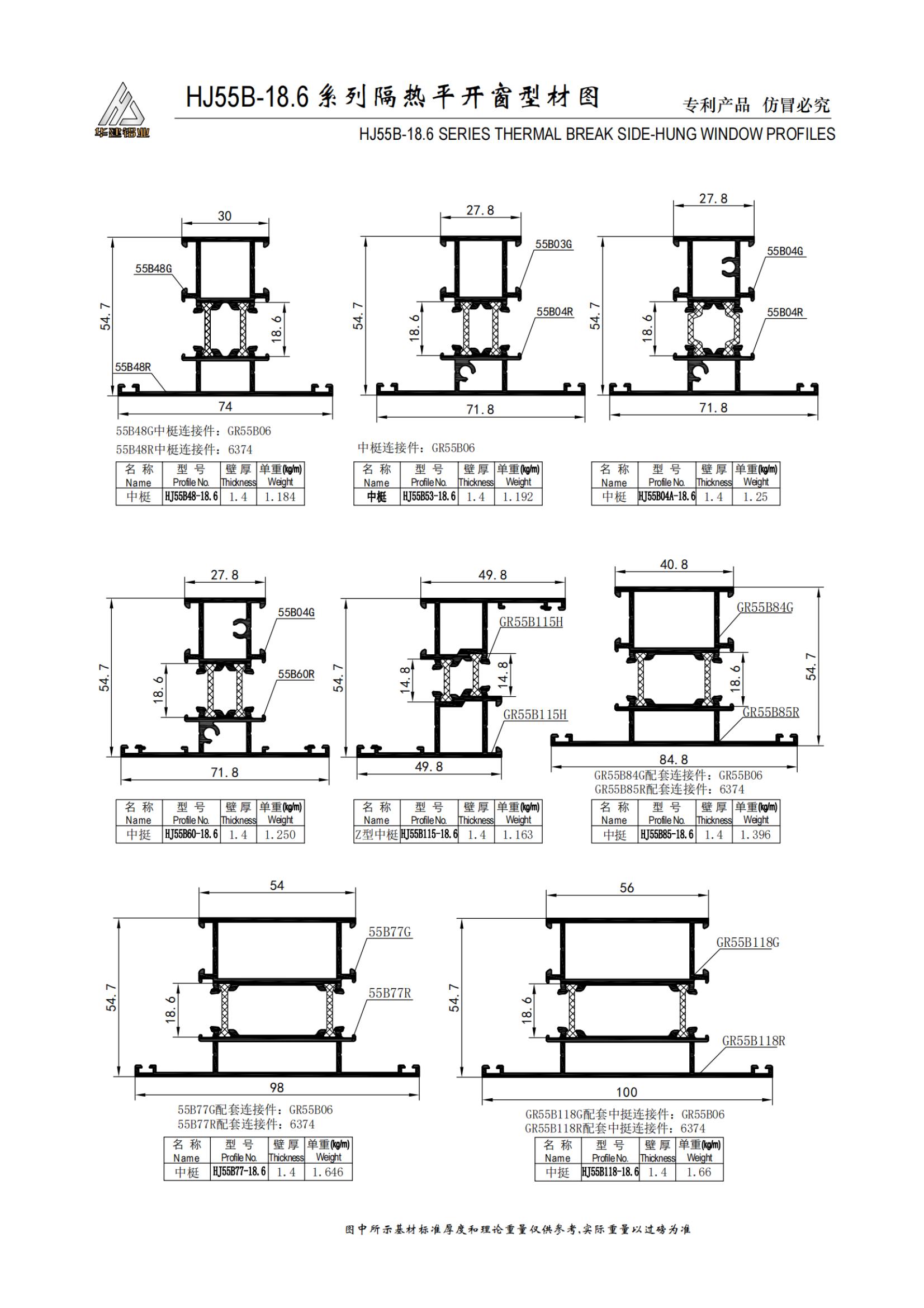 Теплоизолированное распашное окно серии HJ55B-18.6