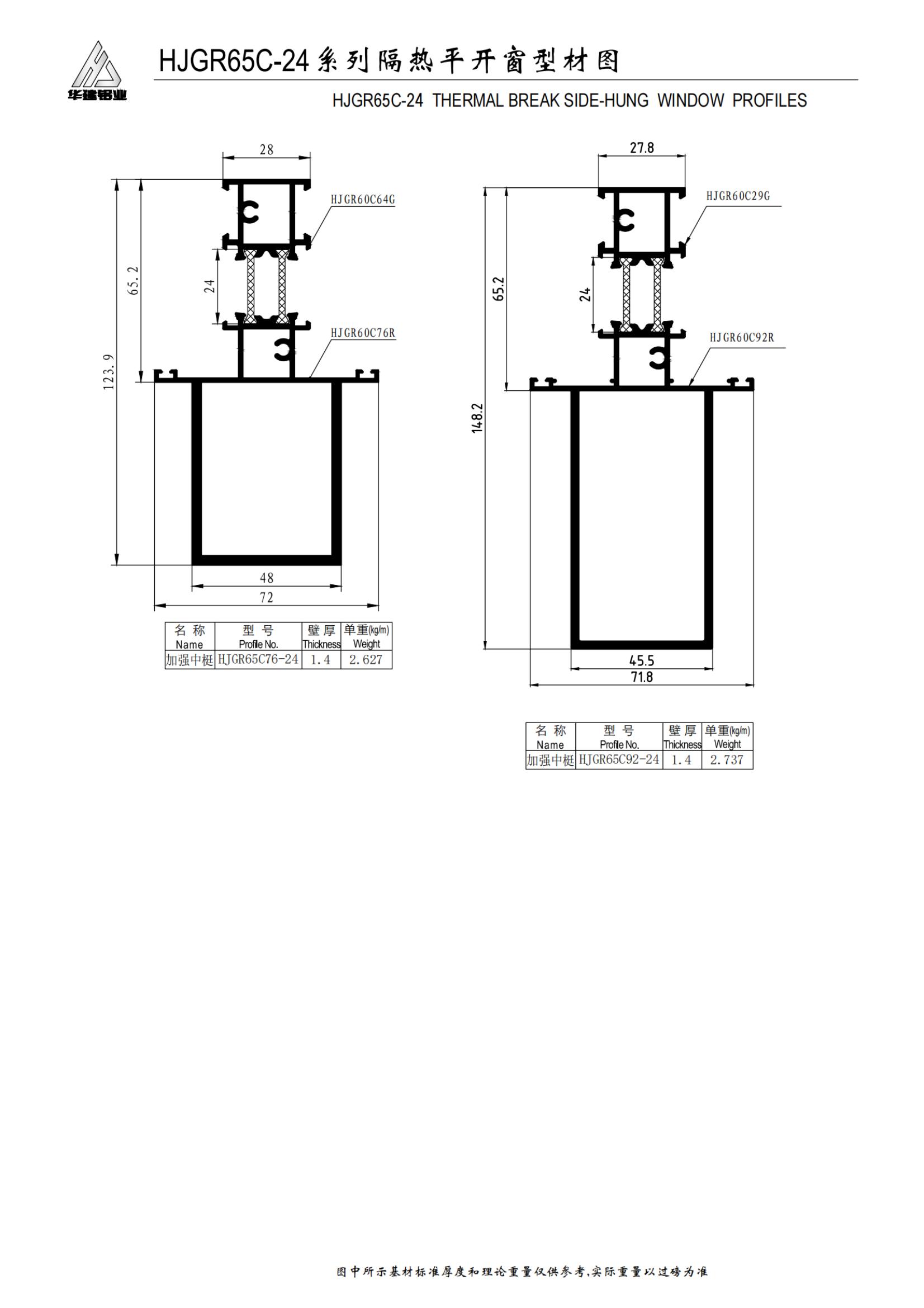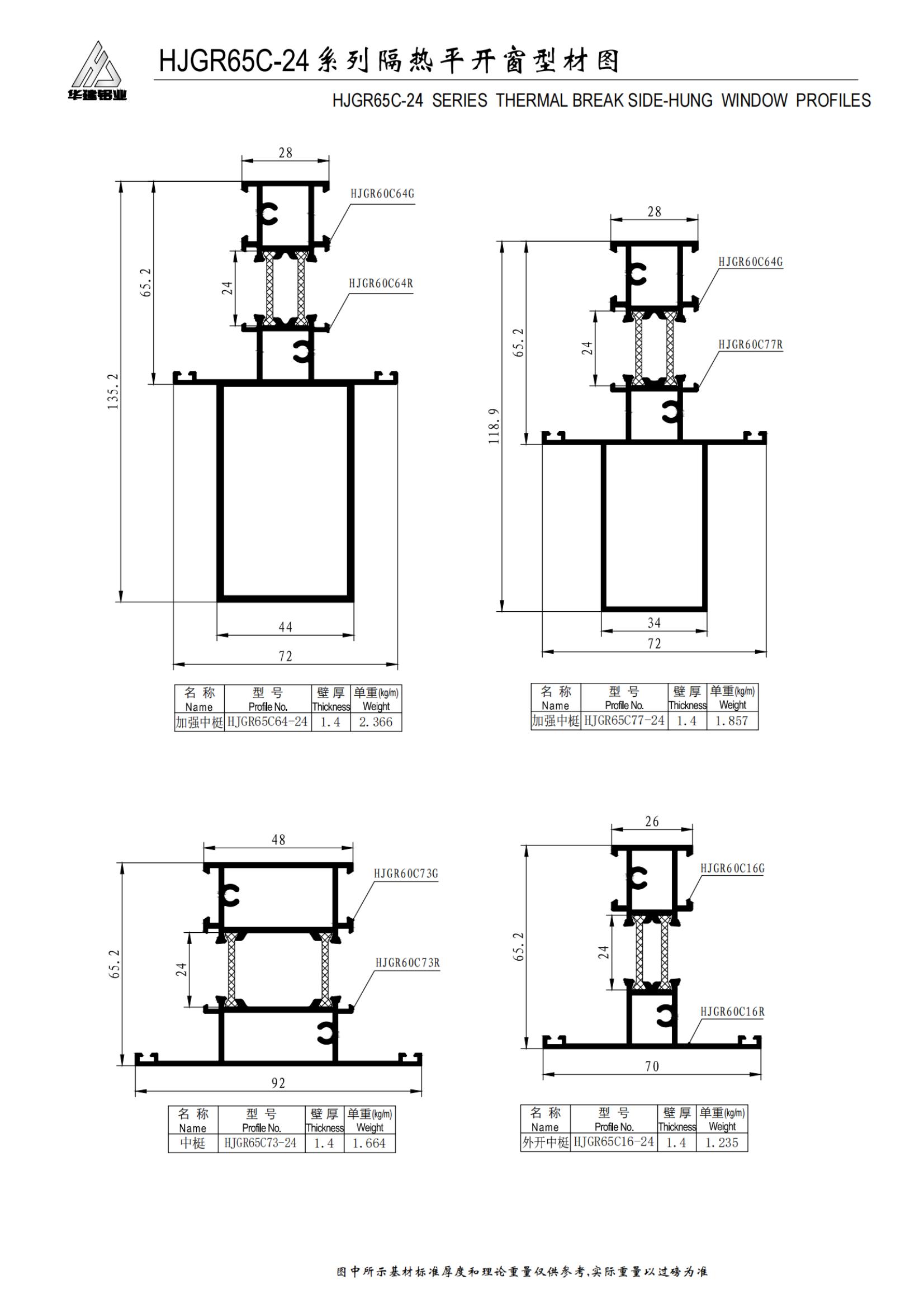 Высокоэффективное теплоизолированное распашное окно серии HJGR65C-24