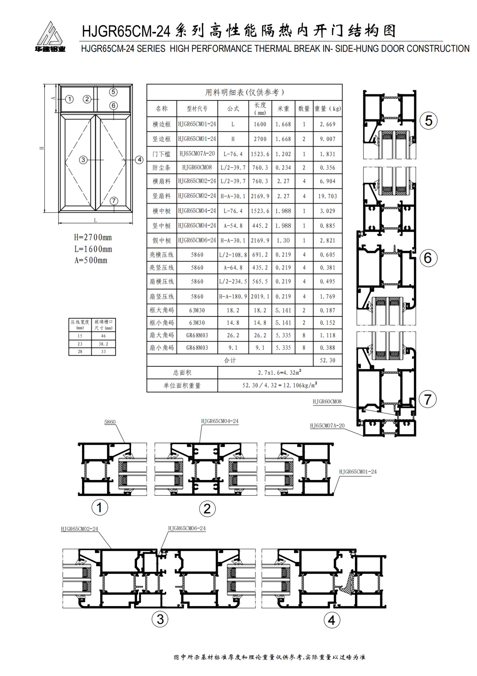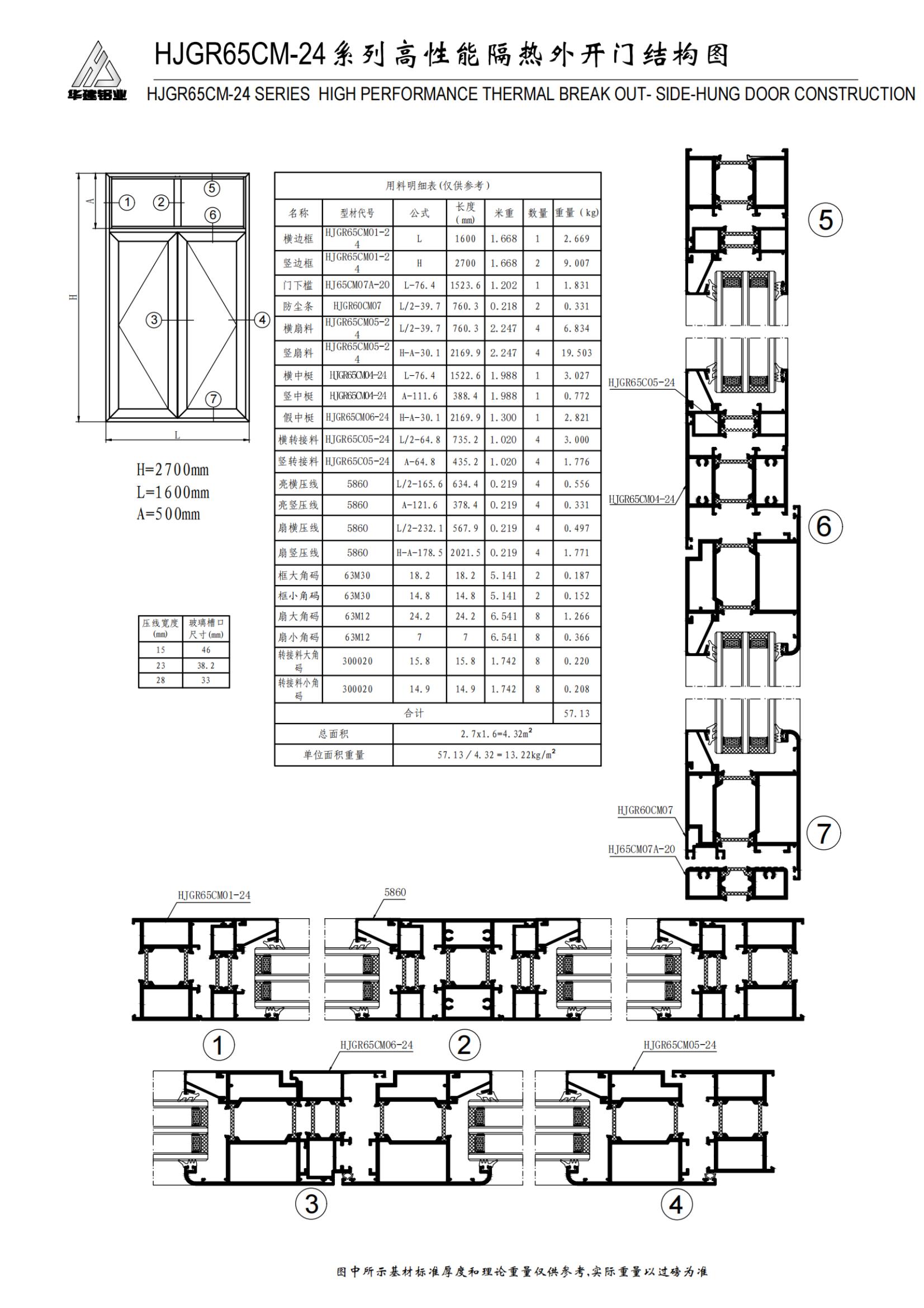 Высокопроизводительная распашная дверь серии HJGR65CM-24 с изоляцией