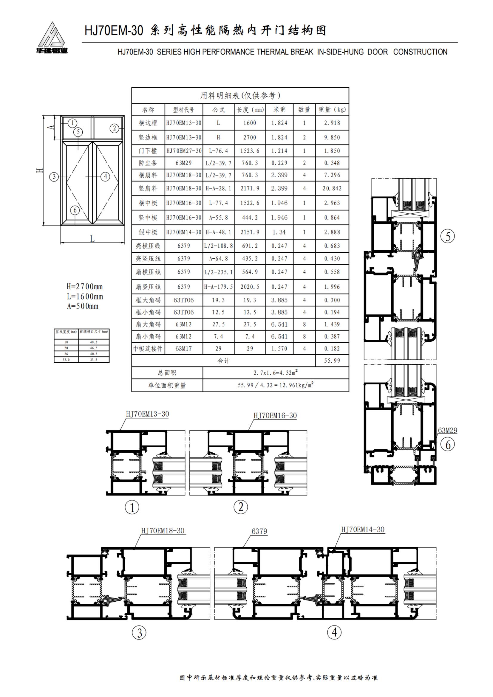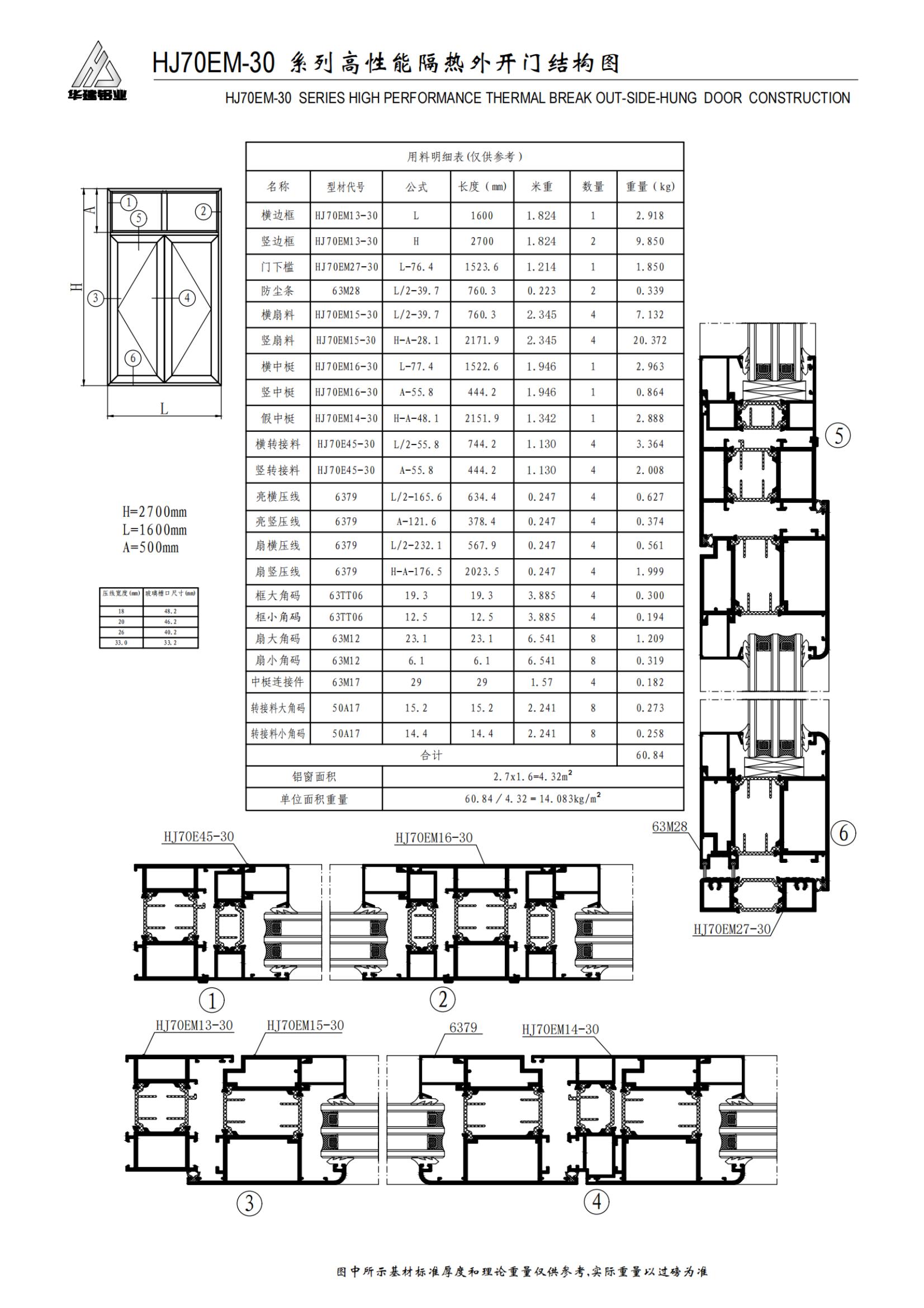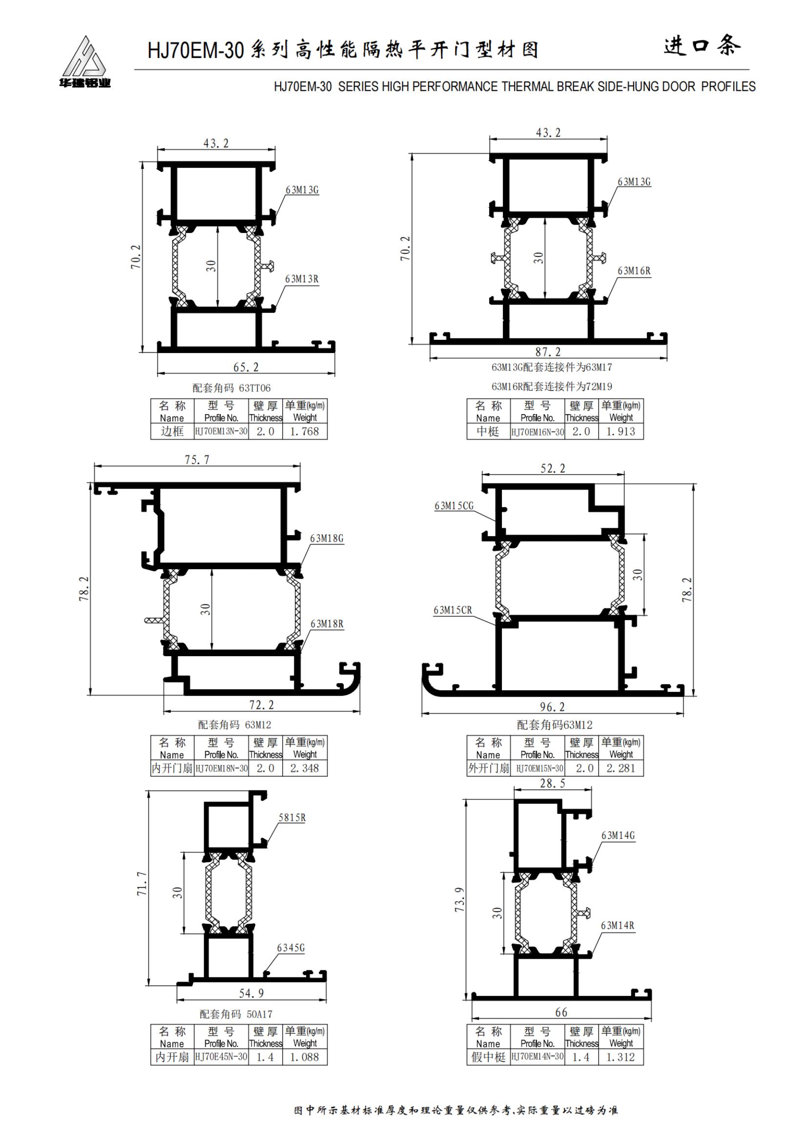 Высокопроизводительная распашная дверь серии HJ70EM-30 с изоляцией