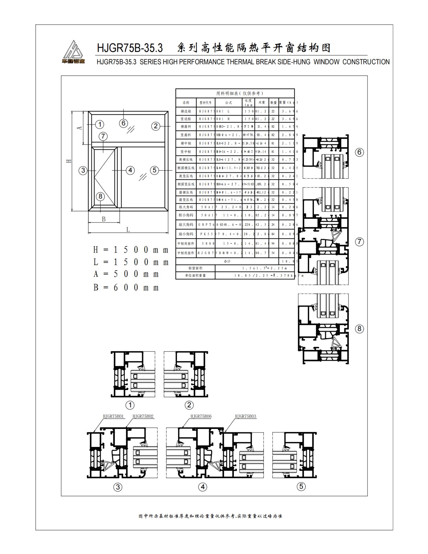 Схема высокоэффективного теплоизолированного распашного окна серии HJGR75B