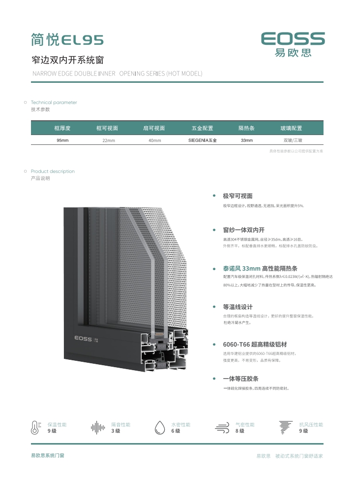 Окно Jianyue EL95 с узким краем и двойной системой внутреннего открывания